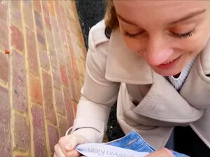 Aito brittiläinen katuhuora tekee nopean suihinoton ja laukeaa. Aito brittiläinen Street Slut tekee nopean suihinoton ja laukeaa