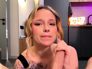 Tattooed hottie Vina Sky swallows cock POV before hard fuck