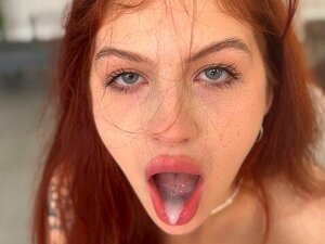 Yksin ejakulaatiot: Sperman nieleminen lähikuvissa paksusta spermasta